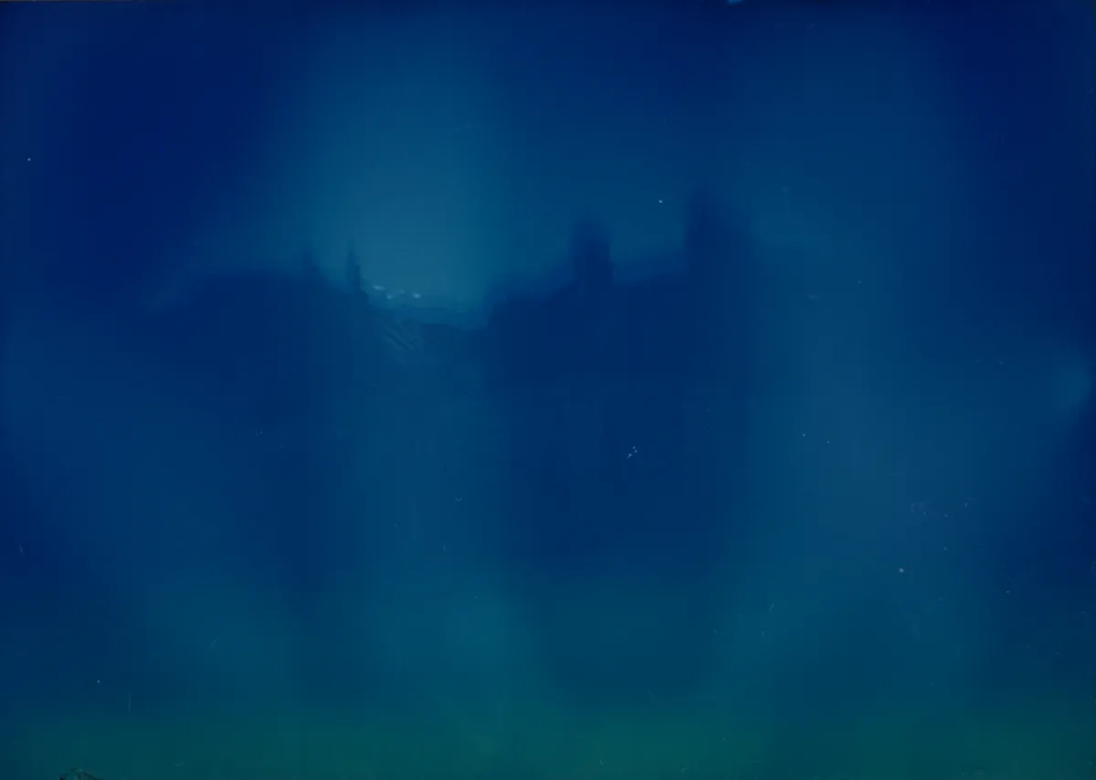 As I said, I recently went about the place lashing drinks-can pinhole cameras to lampposts[5] and trees. I visit them ~daily when walking the dog. Post-storm two showed signs of having been entrained, and were no longer pointing where they were supposed to be. One that was up a tree, another that had been tucked into a corner on a window ledge. I took them down, scanned them, inverted the colours, flipped them left-right, and put them just here and here