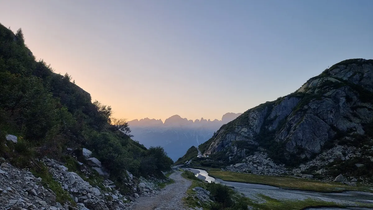 On the wall over there → is a portrait of my great grandfather, on my mother's mother's side. He's my connection to this place. This beautiful valley that I've had the luck and privilege[1] of visiting semi-frequently[2] since childhood. This valley with the older, spikier dolomite peaks and waterfalls on the east side, and the younger, rounder tonalite mountains hosting lakes and glaciers on the west. I love this valley. I love being here. The view from the balcony is amazing. The hiking is glorious and smells of pine. The road cycling is tip-top. It is clean. There are water fountains. The tomatoes taste of something. The coffee is strong and cheap and readily available in Rifugios over 2000 m. In short: it's great[3].